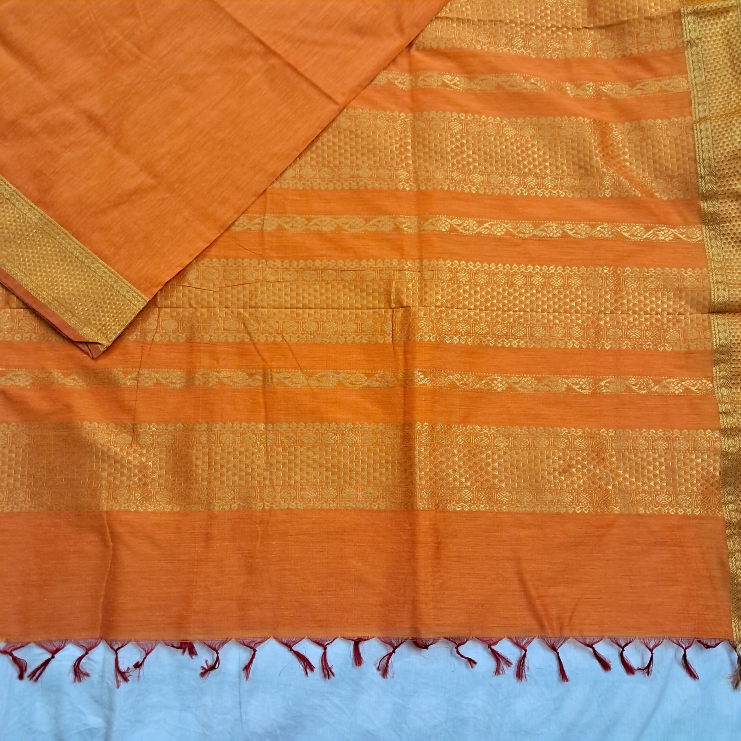 Bright Orange with Double Pett Zari Border – Kalyani Cotton Bharatanatyam Practice Saree